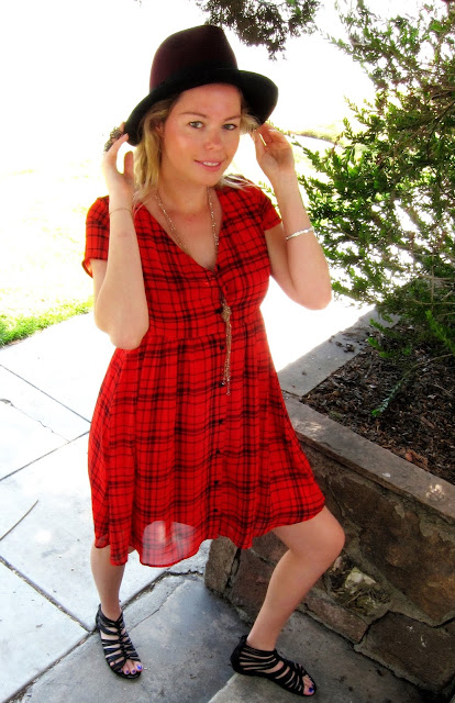 My fedora is a dark red/maroon color which I thought would work well paired with a bright red dress. The dress by the way is one of my favorite wardrobe pieces and I got it on sale for $11. Who doesn't love a bargain? I feel like I can effortlessly throw it on and still feel cute. Dress it up, dress it down, and I won't feel bad when it's time to retire it.